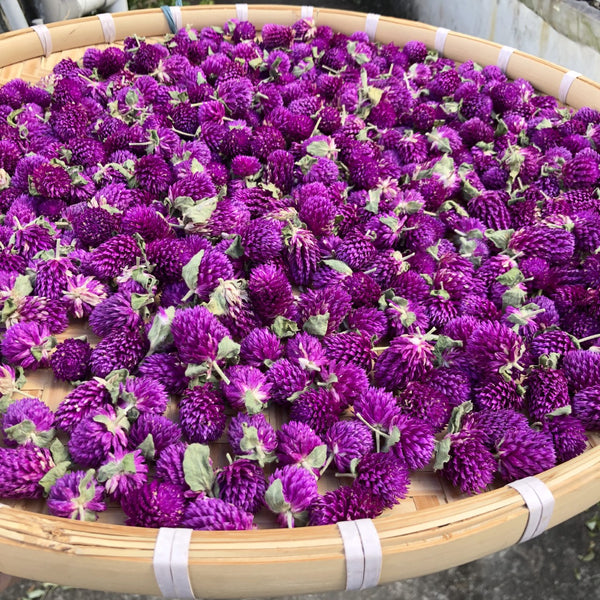 - Gomphrena dried flowers for tea, grown and handcrafted in Hong Kong Clover Seed garden. Pesticide-free